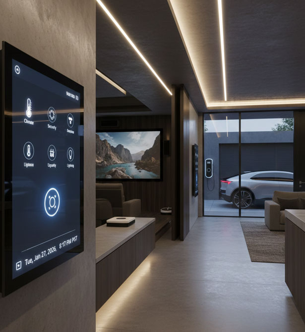 We offer low-voltage installation and tech solutions, including security cameras, network wiring, Wi-Fi systems, access control, smart home systems, ev charging and audio/video installation.